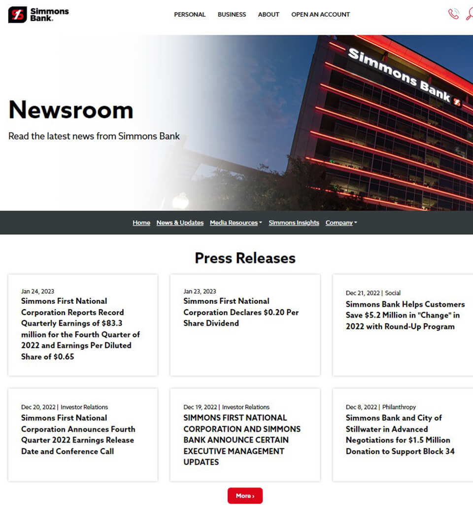 Simmons Bank was looking for an upgraded web experience for their Newsroom and Investor Relations websites, one that better fit the company's high standards and offered direct control of their content.